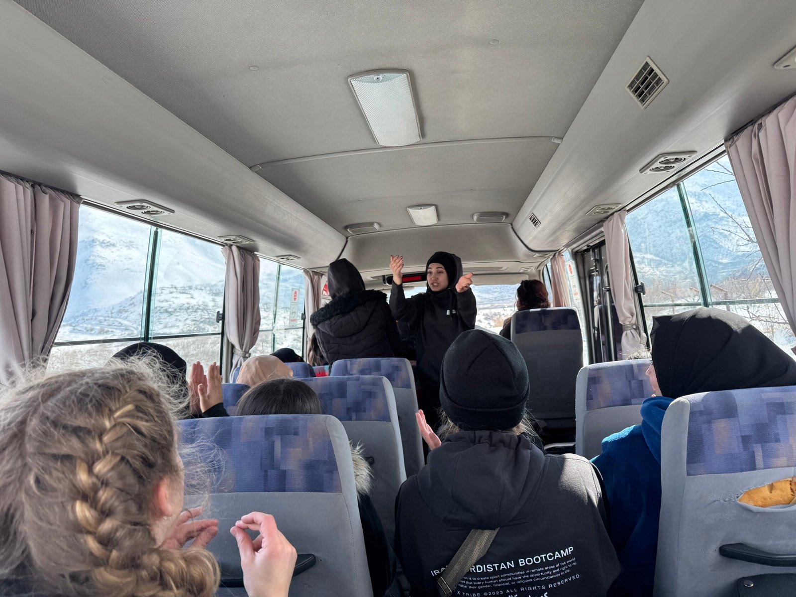 Hvordan gjorde vi det? Vi havde fornøjelsen af at rejse med Sport X, som inviterede 20 flygtningepiger og kvinder med på en sjælden tur væk fra flygtningelejren. Målet var klart. At skabe tryghed, nærvær og tid til leg og grin uden bekymringer. Vi tog dem med op i bjergene, de sneklædte tinder der strækker sig langs grænserne til både Tyrkiet og Iran. Her boede vi sammen med kvinderne og lærte dem at stå på ski over de næste dage.