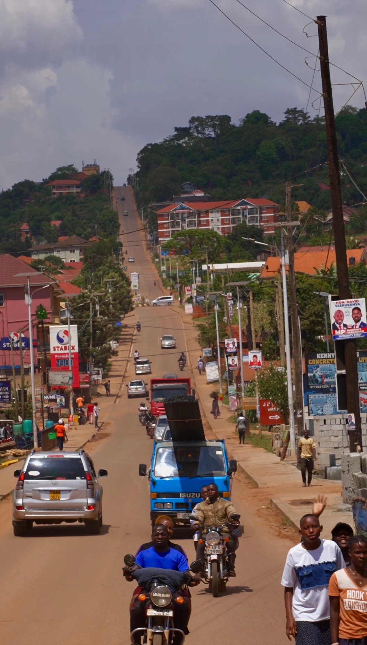 På en af gaderne stod en stor flok mennesker samlet foran en lille elektronikbutik. Et lille tv viste præsidentkandidaten Bobi Wine tale foran en menneskemængde i centrum af Kampala. Folk råbte og heppede. Flere fortalte os, at de håbede inderligt på hans sejr. Han havde også stillet op ved sidste valg, men var kommet for tæt på magten og var endt i fængsel. De sagde åbent, at han måske ikke var den mest kvalificerede, men at han var folkets stemme. Det var voldsomt at overvære.